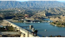 在甘肅永靖縣境內(nèi)。黃河兩岸崇山峻嶺, 形成峽谷。1974年建成具有發(fā)電、防洪、灌溉、養(yǎng)殖、航運等功能的綜合性水利樞紐工程。一條長840米、高147米的巨大攔河壩把黃河攔腰斬斷, 形成了劉家峽水庫(庫容57億立方米,水域面積130平方公里),大壩下安裝了五臺國產(chǎn)大型水輪發(fā)電機組,成了總裝機容量122.5萬千瓦年發(fā)電量57億度的黃河上游第一座水力發(fā)電站。