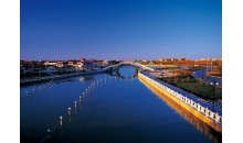 克拉瑪依河又名穿城河,克拉瑪依市區(qū)境內(nèi),交通極便利。克拉瑪依河從城區(qū)東北入境,在城中曲折穿越后城區(qū)西南進(jìn)入西郊水庫(kù),全長(zhǎng)8.51千米,河寬約15米。友誼橋是進(jìn)入克拉瑪依市的門戶,橋主體魏斜拉橋,風(fēng)格獨(dú)特,美觀精巧。全橋采用高桿燈及彩球射燈照明,塔柱安裝霓虹軟管裝飾燈,斜拉索安設(shè)跑燈帶,成為克拉瑪依河上一重要的景點(diǎn)。其余四座交通橋?yàn)闇?zhǔn)葛爾橋,昆侖橋,勝利橋,和西環(huán)橋。
