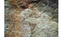 康家石門子巖雕刻畫是一幅國內(nèi)及世界上罕見的生殖崇拜巖畫。位于昌吉州呼圖壁縣的天山腹地, 兩條山溪匯流處的西北岸的新第三紀的粉砂巖壁上。巖面平整,距地表約10米上下。畫面東西長14米,上下高9米多,整個面積達120平方米左右。上面刻繪著二三百個大小不等,身姿各異的人物和動物。大者高 2.04米,小者19厘米。有男有女,或站或臥,或衣或裸,男女合圖、雙頭同體、三頭同體圖像。