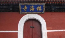 鎮(zhèn)海寺位于山西省忻州市五臺縣臺懷鎮(zhèn)南清水河西側(cè),距臺懷鎮(zhèn)5公里。鎮(zhèn)海寺建在陡峻的石山嘴上,緊貼大院的前沿,樹有幡桿,蹲有石獅,筑有山門、天王殿和鐘鼓二樓。