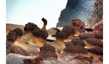 野柳風(fēng)景區(qū)位于臺(tái)灣省基隆市西北方約15公里處的基金公路,是一突出海面的岬角(大屯山系),遠(yuǎn)望如一只海龜蹣跚離岸,昂首拱背而游,因此也有人稱之為野柳龜。受造山運(yùn)動(dòng)的影響,深埋海底的沉積巖上升至海面,產(chǎn)生了附近海岸的單面山、海蝕崖、海蝕洞等地形,海蝕、風(fēng)蝕等在不同硬度的巖層上作用,形成蜂窩巖、豆腐巖、蕈狀巖、姜狀巖,風(fēng)化窗等世界級的巖層景觀。