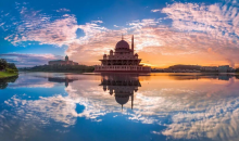粉紅清真寺(Masjid Putra),仿造摩洛哥卡薩布蘭卡的哈桑清真寺而建,坐落在馬來西亞的新行政中心——太子城(Putrajaya,官方譯名:布城),占地面積5.5公頃,耗資1000萬美元,是馬來西亞最大的清真寺,同時(shí)也是東南亞地區(qū)最大的水上清真寺。