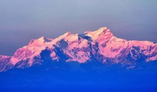干城章嘉峰(Kangchenjunga,也常寫為Kanchenjunga),又叫“金城章嘉峰”、“康章忠格峰”,峰名Kanchenjunga原出藏語的四個(gè)字,通常翻譯為Kang-chen-dzo-nga或Yang-chhen-dzo-nga,在藏語和錫金語中的意思是“雪中五寶”,這從它有五個(gè)峰頂而得來的,并且其中四個(gè)峰頂?shù)暮0卧?400米以上。