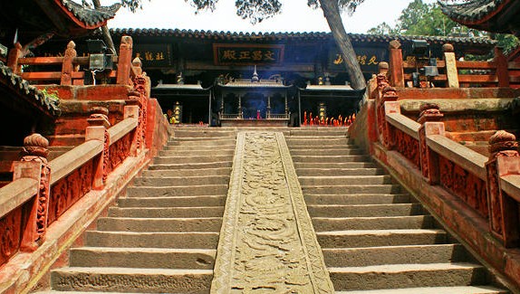 邁進(jìn)帝鄉(xiāng)大門,首先看到的是中間嵌有九龍石壁的二十四級石階,二十四級石階象征傳統(tǒng)的“二十四孝”,巨型九龍石壁顯示出文昌帝宮的帝王等級。