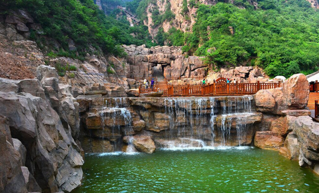 “天路奇觀”,是景區(qū)的一條山水游線,全長1000米,臺階1688個(gè)。走進(jìn)天路奇觀,大家可以看到,天路兩邊巨峰對峙,直插云霄,谷深且長,蜿蜒向天,好像一條天路展現(xiàn)在我們的面前,沿途分布著壯美奇特、撼人心魄的景觀,所以稱之為“天路奇觀”。它由迎賓棧道、黛眉三潭(洗心潭、清心潭、靜心潭)、山澗飛瀑、赤壁丹崖等景觀組成,現(xiàn)在我們將逐一領(lǐng)略這奇山、奇水、奇峰、奇路、奇石等風(fēng)景。