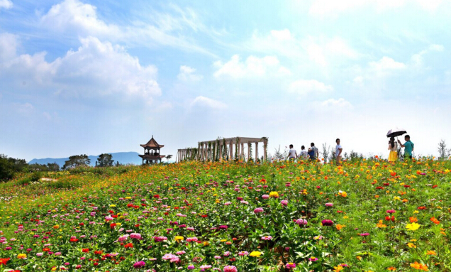 可觀賞波斯菊,百日草,醉碟,鳶尾花、海棠、枇杷、巨紫荊、牡丹、月季、楸樹、波斯菊、百日草,醉碟、二月蘭、鳶尾花、虞美人、鳳仙花,櫟樹、木槿樹、櫻花、美人蕉、紅瑞木等百余種花木。