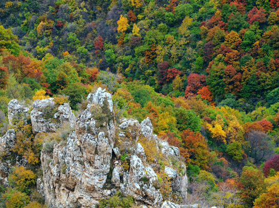 峽谷中,谷寬澗淺,如在盛夏時節(jié),陽光普照,滿山滴翠,空氣清新,鳥語花香。再往前行,只見峰巒閉鎖,兩壁怪石交錯,明媚的陽光已不復存在,冷風習習、陰森逼人,只有一線天,亂云飛渡。順山路而進,時而陡壁迎面,山窮水盡;時而峰回路轉(zhuǎn),柳暗花明,別有洞天。當?shù)匕傩罩v,四十里飛狐七十二道彎,彎彎有洞天美景,處處含勝景奇觀。峽谷一路前行,有“一炷香”、“雙箭孔”、“三仙思月”、“四將守門”、“五狗望月”、“六郎樁”、“七女峰”、“八仙洞”等奇峰異石,每一處奇觀都會給人留下無限遐想。四十里飛狐四十里景,迷宮奇物天作成。它以山峰怪異稱奇,以深幽兇險稱奇,自古多少兵家因此處山兇地險而爭戰(zhàn)駐守,多少文人墨客對奇景嘆妙稱奇留下詩篇。這里公路通達,車行順暢,更成為旅游觀光、尋覓歷史遺跡的絕好去處。