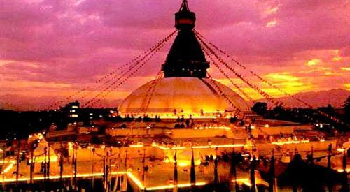 整個(gè)佛塔群像一座小山城,房舍和佛舍之間形成一道環(huán)形街道,商店林立,居民大都是西藏裔。出售的多為佛像或西藏式首飾。每年朝拜季節(jié),不丹、錫金和中國(guó)西藏佛教徒來此甚眾。