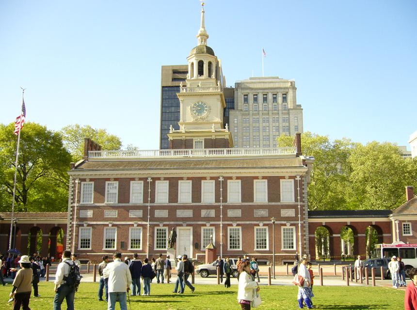 羅斯故居是設(shè)計(jì)美國(guó)國(guó)旗星條旗的羅斯夫人的老家。據(jù)說(shuō),它是1774年由華盛頓總統(tǒng)建議而興建的。附近的Elfreth's Alley和Bladen Coat小路仍留存了 十八世紀(jì)美國(guó)開(kāi)國(guó)初期的形跡,散步其間,易興思古幽情?!—?dú)立紀(jì)念館建立于1732年,原為州政府,后于1776年,在該處發(fā)表獨(dú)立宣言。其后,又在該處起草合眾國(guó)憲法,從而誕生了美利堅(jiān)合眾國(guó)。