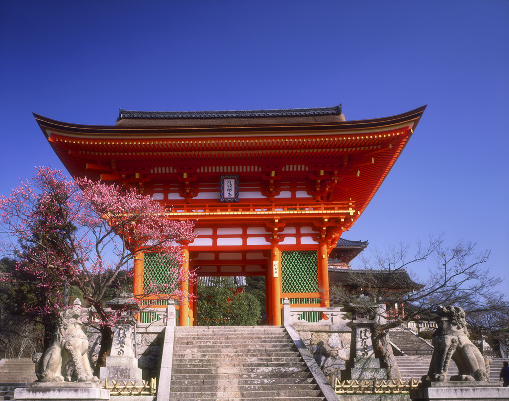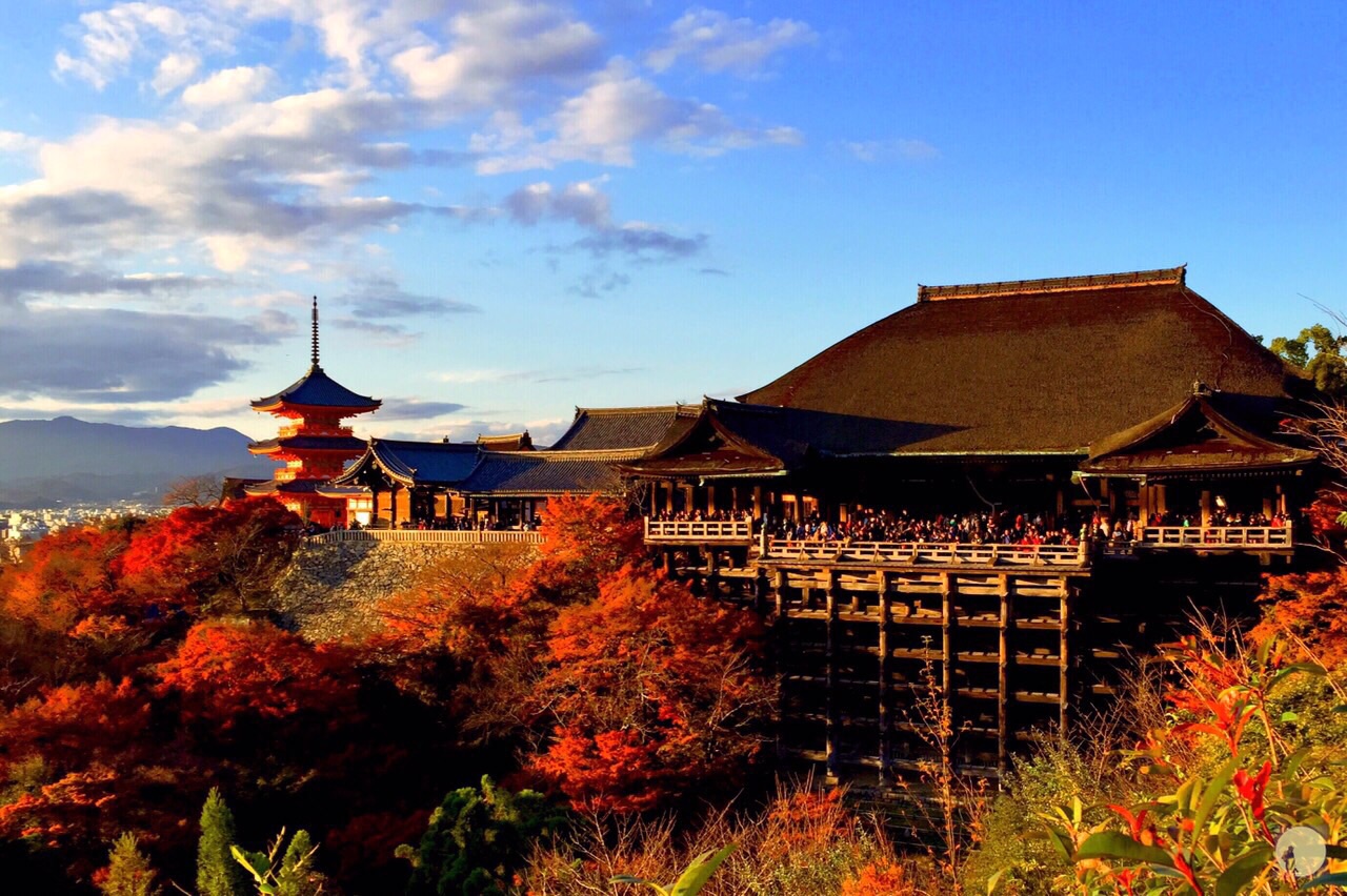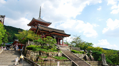 清水寺位于京都東部音羽山的山腰,始建于778年,是京都最古老的寺院,曾數(shù)次被燒毀并重建,后于1994年被列入世界文化遺產(chǎn)名錄。本堂前懸空的清水舞臺(tái)是日本國(guó)寶級(jí)文物,四周綠樹環(huán)抱,春季時(shí)櫻花爛漫,是京都的賞櫻名所之一,秋季時(shí)紅楓颯爽,又是賞楓勝地。清水寺的茶藝名列京都之首。