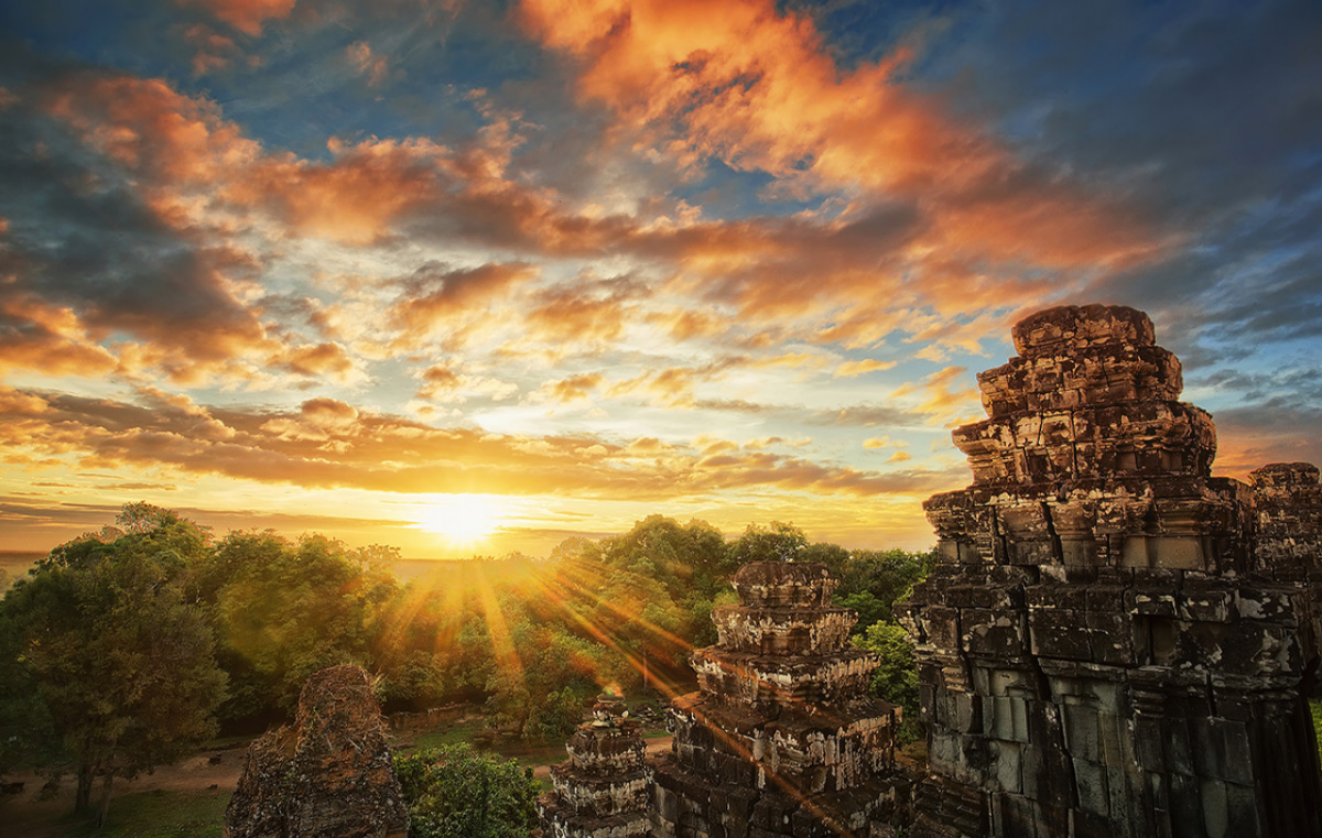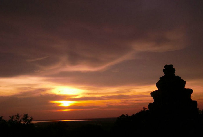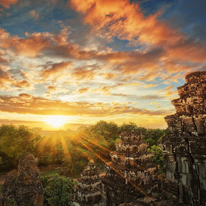 巴肯寺正對(duì)羅洛寺建筑群,它建造在吳哥古都附近的一座孤立的山上。位于吳哥城外南面,原為都城的中心,臺(tái)基為金字塔式的五層,各層有塔,層層而上,極為壯觀(guān)。在山頂可以俯瞰吳哥窟全景、吳哥古都和周?chē)木包c(diǎn),是看日出和日落的最佳地點(diǎn)。