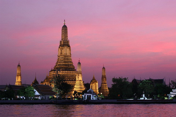 在湄南河及其支流上游覽,最引人眼球的,要算是那些宏偉壯麗、金光閃閃的寺廟、佛塔。這一群群多姿多彩的佛教建筑,與市內(nèi)高層建筑、居民住宅混建在一起,構(gòu)成一道奇特、亮麗的風(fēng)光。導(dǎo)游介紹:廟宇建在河左岸的較多,曼谷市內(nèi)約有一萬多間,所以泰國享有“千佛之國”、“黃袍之國”的聲譽(yù)。在湄南河及其支流兩岸,有幾座著名的寺廟:一是玉佛寺,它與大王宮相連,整座佛寺裝飾得金碧輝煌,富麗堂皇。大雄寶殿內(nèi)供奉的翡翠玉佛(釋迦牟尼),是泰國最重要最有價(jià)值的鎮(zhèn)國之寶。二是鄭王廟,位于湄南河西岸。它曾被定為鄭昭王(鄭昭王之父是華人)的御用寺院,其最富吸引力的建筑物是位于正中的“拍攀”大塔。這塔高79米,在晨曦之際,陽光照射,寶塔的頂峰會發(fā)出萬丈光芒,因此寺廟又被稱為黎明寺。三是臥佛寺,又稱菩提寺,它與鄭王廟正好隔岸相望,是曼谷最老和最大的寺院。寺內(nèi)供奉著一尊獨(dú)特大臥佛。這里一向被視為泰國第一所民間教育中心,故享有“泰國第一大學(xué)”之美譽(yù)。此外還有王孫寺、金佛寺、云石寺、金山寺等著名寺廟。