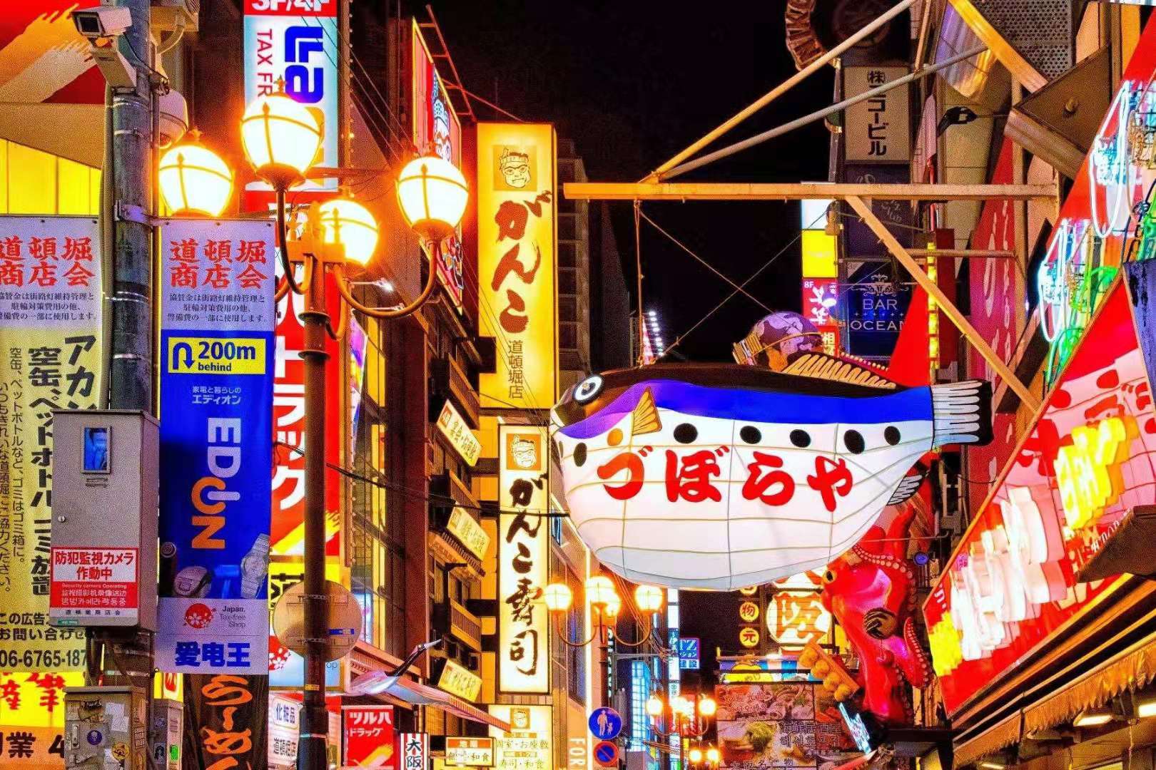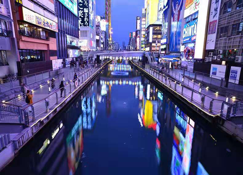 道頓堀是沿著道頓堀川南岸的一大繁華街區(qū)。日本人常說“吃在大阪”,可見這里的飲食店之多,還有成片的娛樂設(shè)施,是最受大阪市民歡迎的地方。這里有不少電影院,還有上演木偶戲的“文樂座”和表演大眾曲藝──“寄席”等傳統(tǒng)藝術(shù)的劇場。道頓堀作為大阪的代表地區(qū)常常在國內(nèi)外的電影中亮相。在護(hù)城河兩岸布置了許多花壇和噴泉,版權(quán)所有山東聊城聊之旅國際旅行社有限公司,轉(zhuǎn)載必究!建立起一個很好的市區(qū)自然環(huán)境,使觀光客和市民樂于光顧這里。道頓堀川的兩岸的室外廣告和霓虹燈連成了一片,有些建筑物的整個墻面被五光十色的霓虹廣告裝點。每到夜晚,燈光裝飾的招牌、霓虹燈光和道頓堀川水面上的反射光交相輝映,把城市點綴得更加華麗漂亮。
