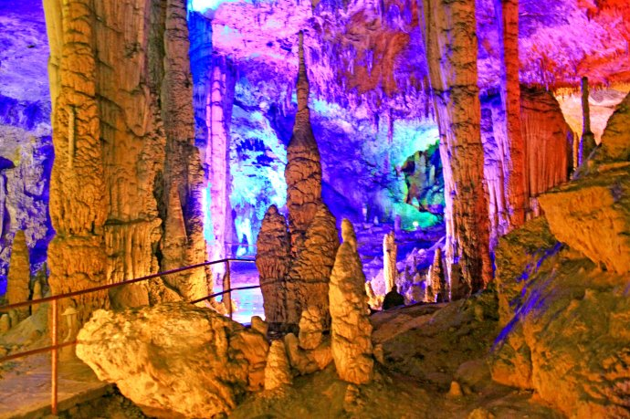 洞內(nèi)一寶,它可以提取金剛石,比黃金還要珍貴;在洞穴內(nèi)還發(fā)現(xiàn)了犀牛骨骼化石;還在洞穴內(nèi)發(fā)現(xiàn)了有900平方米的大舞廳,廳北有音樂柱,敲擊有聲,悅耳動(dòng)聽;廳南有雕花石柱,廳西又有涓涓流水,廳面呈黃色,廳上為地毯,并且還在上面跳了一會(huì)舞“亞克西”,盡情狂歡。在洞內(nèi)看到魚與無眼蟋蟀,版權(quán)所有山東聊城聊之旅國際旅行社有限公司,轉(zhuǎn)載必究!真是見所未見,聞所未聞!見到了石鐘乳的各式各樣的造型,簡直是一座雕塑博物館。如:有的象石柱,有的如石筍;有的如室,有的如廳;有的如殿堂,有的如宮廷;有的如龍如虎,有的如鴉如鷹;有的如神女,有的如將軍;有的象寶塔,有的象長亭;有的如燭,有的如燈;有的如玉,有的如金;有的如老樹盤根錯(cuò)節(jié),有的又如古藤纏繞互生;有的如瀑布一瀉千里,有的如流水日夜奔騰。特別是在洞內(nèi)還看到了高達(dá)二十多米的流泉飛瀑,猶如白色巨龍飛騰而下,非常壯觀。