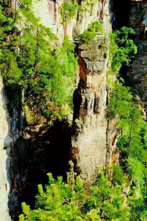 據(jù)明朝萬歷年間編寫的《慈利縣志》記載,神堂灣原名叫“神堂寨”,位于索溪峪的西部,是一塊充滿神秘感的半圓形深峪洼地。 神堂灣三面都是懸崖絕壁,只有一面山上有一道缺口,可向灣底俯瞰。你會產(chǎn)生一種神秘感。