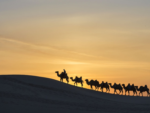 在這坦蕩的大漠中,乘一峰駱駝?dòng)^日出日落胸中自有一番豪邁。而佇足大漠邊、面積達(dá)1000平方米的達(dá)斯坦古城宮殿遺址,每當(dāng)大風(fēng)過(guò)后,從流沙中露出的紅、黃、藍(lán)色的陶片和年代久遠(yuǎn)的古幣,讓人在懷古幽靜中又有幾分尋寶的驚喜。