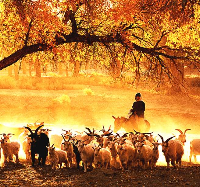 化的植物,大多是野生,被人們譽為“沙漠勇士”。胡楊林是一種神奇的群體,它們耐寒、耐熱、耐堿、耐澇、耐干旱。胡楊生長期漫長,由于風沙和干旱的影響,很多胡楊樹造型奇特、詭異,是一種神奇的自然景觀和獨特的人文景觀,堪稱大漠中的一顆綠色明珠,所以胡楊樹有“活三千年不死,死三千年不倒,倒三千年不朽”之稱。版權所有山東聊城聊之旅國際旅行社有限公司,轉載必究!每年9、10月,當?shù)谝粓銮锼?,大片的胡楊林由綠變黃,一眼望去,陽光下金色的樹葉趁著湛藍的天空于風中婆娑起舞,那種強烈的反差,鮮明的影調,亮麗的色彩,足以令任何語言文字顯得蒼白無力。胡楊是中亞地區(qū)唯一適合生長的喬木,它是大自然漫長進化過程中幸存下來的寶貴物種。它嫵媚的風姿、倔強的性格、多舛的命運激發(fā)人類太多的詩情與哲思。古往今來,胡楊已經(jīng)成為一種精神而被人們所膜拜。
