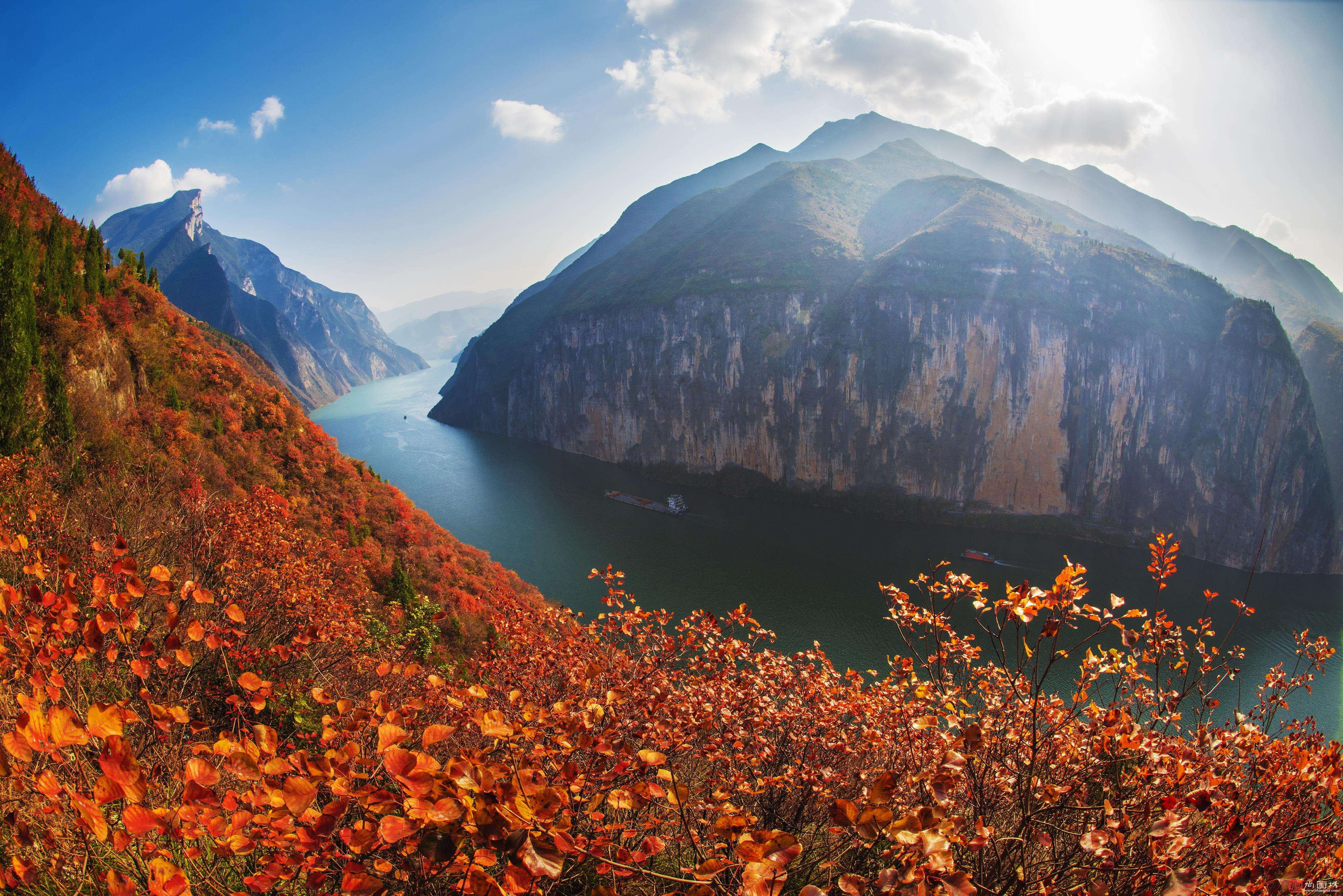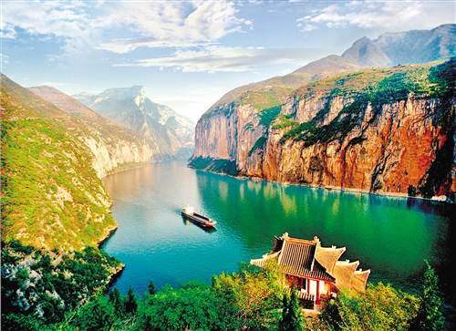 瞿塘峽雖然僅八公里長,卻是最令人屏息的一段江峽。兩岸如削,巖壁高聳,大江在懸崖絕壁中洶涌奔流,自古就有“險莫若劍閣,雄莫若夔”之譽。瞿塘峽是三峽中最短的一個峽,西起重慶奉節(jié)縣的白帝城,東到巫山縣的大溪鎮(zhèn),全長雖然只有8公里,但卻有“西控巴渝收萬壑,東連荊楚壓群山”的雄偉氣勢。在三段峽谷中,它最短,最狹,最險,氣勢和景色也最為雄奇壯觀。其“雄”首先是山勢之雄。游人進入峽中,但見兩岸險峰上懸下削,如斧劈刀削而成。山似拔地來,峰若刺天去。峽中主要山峰,有的高達1500米。瞿塘峽中河道狹窄,河寬不過百余米。最窄處僅幾十米,這使兩岸峭壁相逼甚近,更增幾分雄氣。其中峽之西端的夔門尤為雄奇。它兩岸若門,呈欲合未合之狀,堪稱天下雄關(guān)。瞿塘之雄還在于水勢之雄。古人詠瞿塘:“鎖全川之水,扼巴蜀咽喉”。瞿塘峽雖然較短,但峽小景不少。我們將上溯逐一游覽。