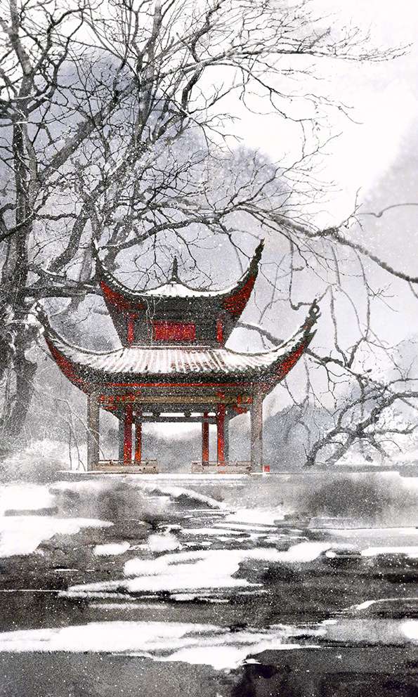 該亭抗日戰(zhàn)爭時期被毀,1952年重建,1987年大修,是由當時的湖南大學校長李達專函請毛澤東主席所書手跡而制。亭內立碑,上刻毛澤東主席手書《沁園春·長沙》詩句,筆走龍蛇,雄渾自如,更使古亭流光溢彩。該亭三面環(huán)山,東向開闊,有平縱橫十余丈,紫翠菁蔥,流泉不斷。亭前有池塘,桃柳成行。四周皆楓林,深秋時紅葉滿山。