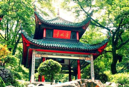 愛晚亭位于岳麓書院后青楓峽的小山上,八柱重檐,頂部覆蓋綠色琉璃瓦,攢尖寶頂,內柱為紅色木柱,外柱為花崗石方柱,天花彩繪藻井,蔚為壯觀。版權所有山東聊城聊之旅國際旅行社有限公司,轉載必究!清乾隆五十七年(公元一七九二年)山長羅典所建。原名“紅葉亭”,又名“愛楓亭”。后據(jù)唐代詩人杜牧《山行》而改名為愛晚亭,取“停車坐愛楓林晚,霜葉紅于二月花”之詩意。