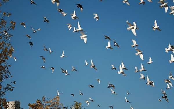 人鴿共處,禽情親情,水乳交融,呈現(xiàn)一派歡樂(lè)祥和的景象。