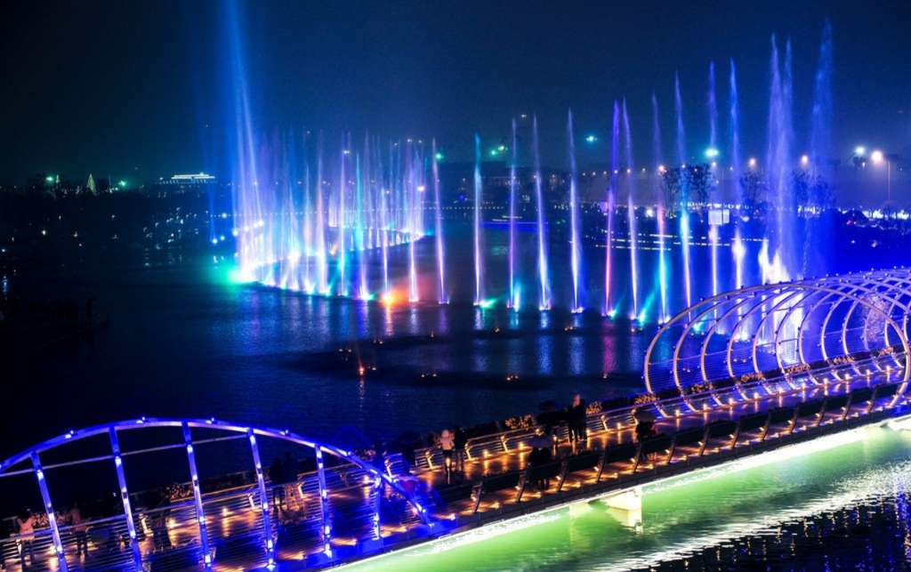 長沙梅溪湖音樂噴泉是國內(nèi)大型音樂噴泉之一,同時(shí),長沙梅溪湖音樂噴泉也是亞洲最長音樂噴泉。2013年2月長沙梅溪湖音樂噴泉開始投入使用。梅溪湖音樂噴泉位于梅溪湖國際新城節(jié)慶島與文化藝術(shù)中心之間的水面上,金茂府正對面,長460米,高30米,通過一條弧線貫穿4個(gè)圓形組團(tuán),共采用200個(gè)三維噴頭、4個(gè)大型激光、1000盞LED燈。