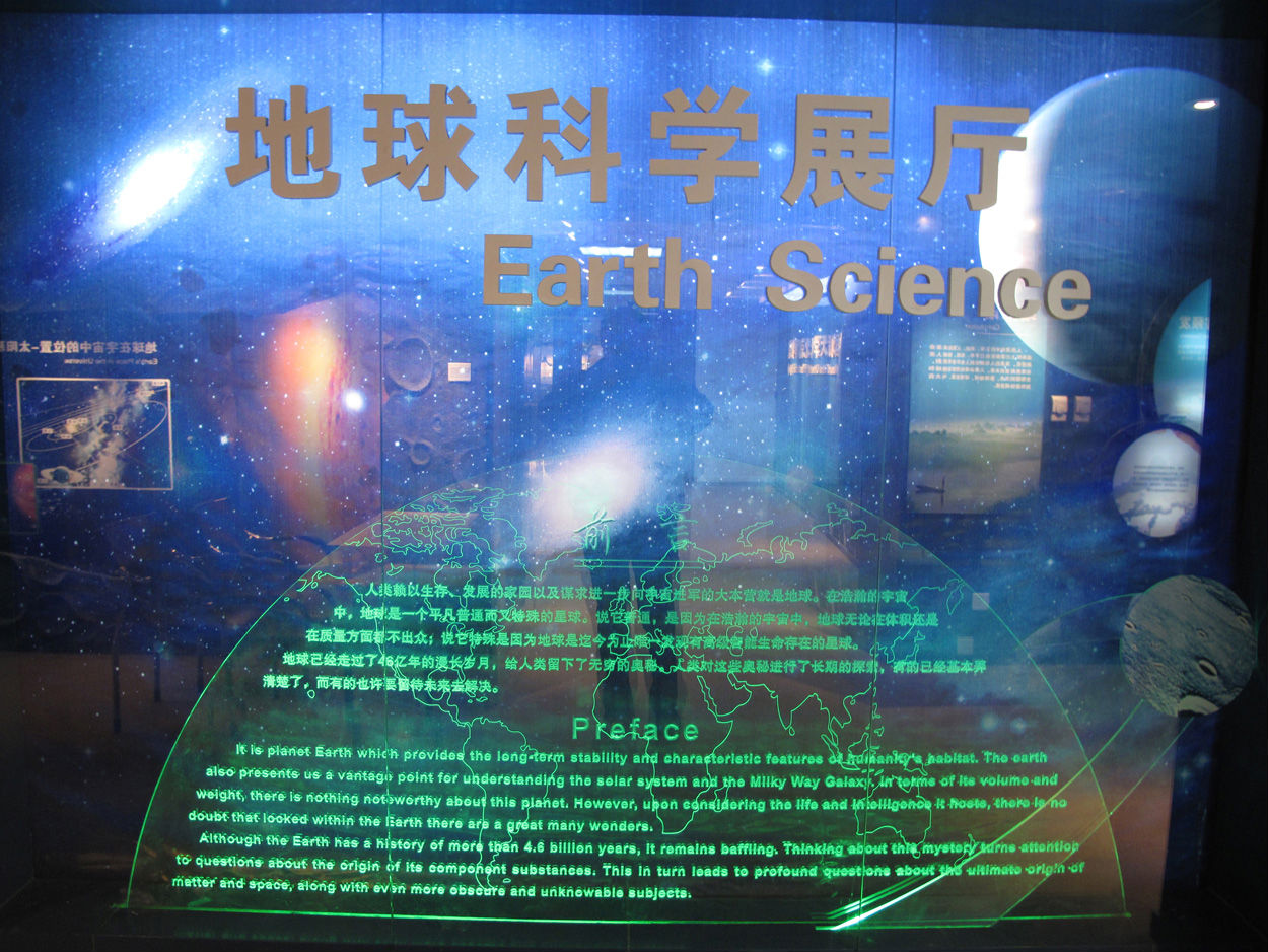 地學陳列展覽包括地球奧秘展廳、生命起源與進化展廳、珠寶玉石展廳、礦物巖石展廳以及礦產(chǎn)資源展廳。生動而豐富的展示內(nèi)容配合新穎而獨特的展示形式為觀眾打開了地球46億年滄桑巨變的宏偉畫卷、地球生命38億年進化的歷史長廊,展示了精美絕倫的珠寶玉石世界、五光十色的礦物巖石天地以及與人類生存息息相關(guān)的地下寶藏,講述了人類與大自然和諧協(xié)調(diào)發(fā)展的重要性,告訴人們保護環(huán)境是每個人的神圣職責。其展示內(nèi)容融科學性、知識性、通俗性和趣味性于一體,展示形式包括聲光電技術(shù)、模擬仿真技術(shù)、信息化展示技術(shù)、互動技術(shù)以及相關(guān)高新科技手段等。此外館內(nèi)還設置了寶玉石禮品廳、寶玉石工藝品柜臺以及休閑服務區(qū),可滿足游客休閑和購物的需要。