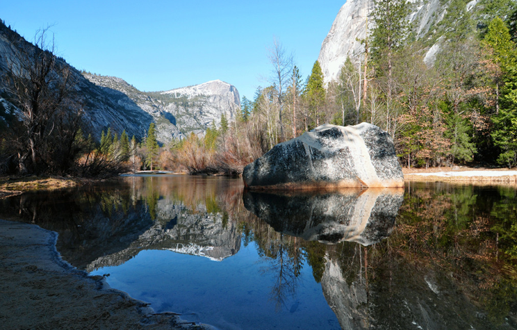 約塞米蒂的巖石會(huì)你從心底感到震撼——你會(huì)真正認(rèn)識(shí)到自然的鬼斧神工。光滑花崗巖最完美的部分分布在海拔2400~2700米的地方,有的方圓達(dá)數(shù)公里,光滑的花崗巖上面只有星星點(diǎn)點(diǎn)的疤痕,那是風(fēng)雨在上面的歲月留痕。保存最完好的部分光彩照人,像平靜的水面和玻璃一樣反射著陽光,盡管數(shù)千年來它們一直暴露在風(fēng)吹雨打之中,但它們每天都像被擦亮了一樣光芒四射。
