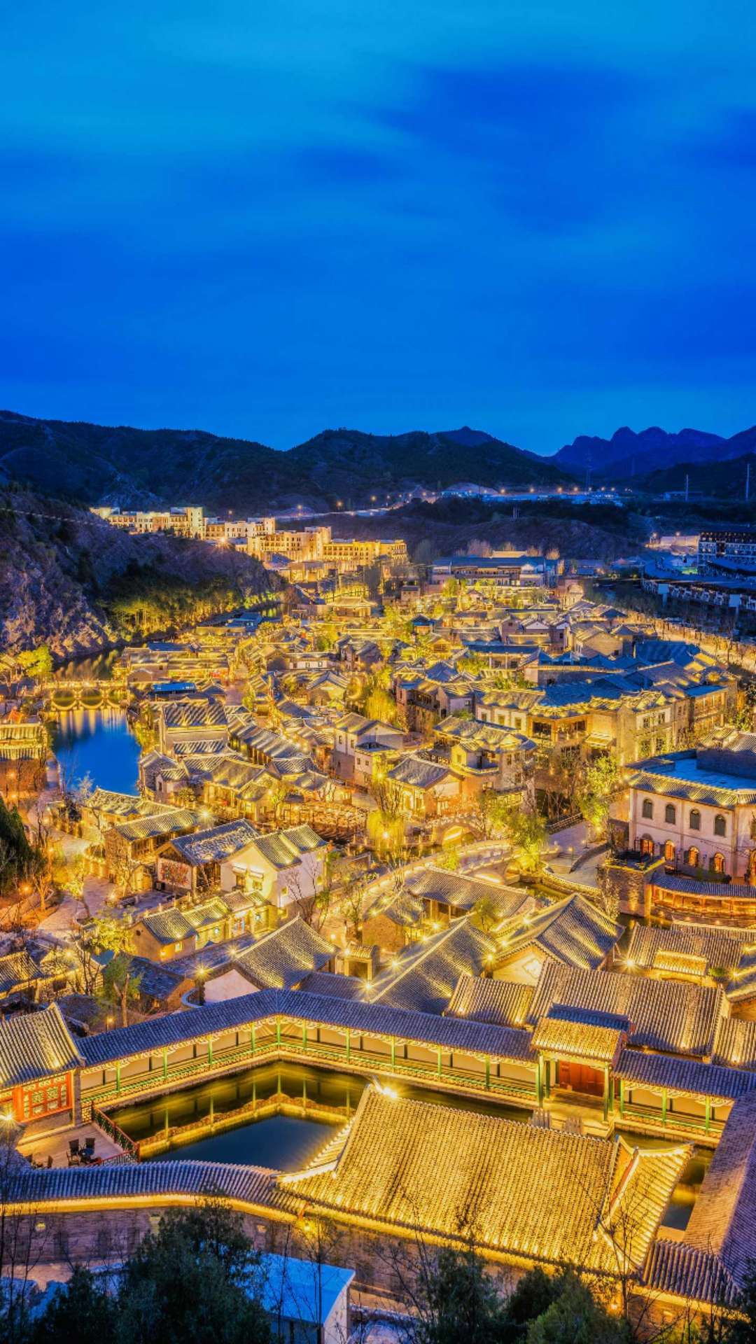 最險(xiǎn)的司馬臺(tái)長城,坐擁鴛鴦湖水庫,是京郊罕見的山水城結(jié)合的旅游度假景區(qū)。夜景堪稱一絕,目前已成為北京夜游新地標(biāo)。與河北交界,交通便捷,距首都國際機(jī)場和北京市均在1個(gè)半小時(shí)左右車程,距離密云區(qū)和承德市約45分鐘車程。景區(qū)內(nèi)建有精美的民國風(fēng)格的山地四合院建筑43萬平方米,總占地面積9平方公里,集觀光游覽、休閑度假、商務(wù)會(huì)展、創(chuàng)意文化等旅游業(yè)態(tài)為一體,是長城腳下獨(dú)具北方風(fēng)情的度假式小鎮(zhèn)。
