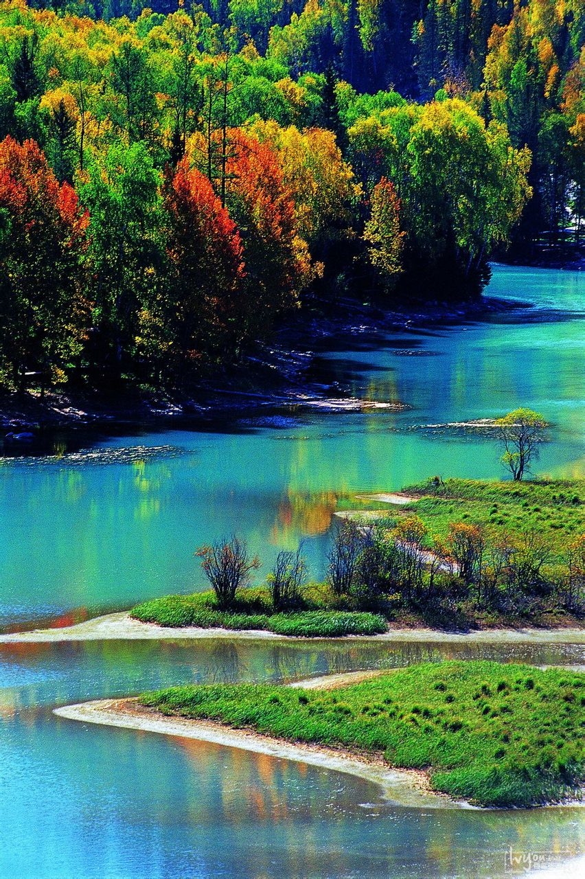 變化,確是嵌在喀納斯河上的一顆明珠??{斯河床在這里形成幾個(gè)由反“S”狀彎河曲組成的半月牙河灣,被稱之為“月亮灣”