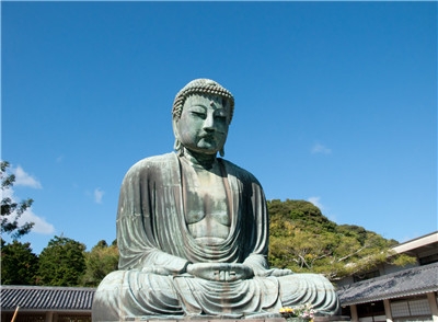 鐮倉大佛位于古都鐮倉的凈土宗寺院高德院內的阿彌陀如來青銅坐像俗稱鐮倉大佛,是古都鐮倉的象征,大佛凈高11.3米,連臺座高13.35米,重約121噸。佛像建造于1252年,大佛的較平的面相、較低的肉髻和前傾的姿勢等,具有鐮倉時代流行的宋代佛像的風格,是鐮倉時期的代表性塑像,被定為日本國寶。與奈良東大寺大佛在后世經歷多次補修不同,鐮倉大佛基本保持了造像當初的形態(tài),所以非常珍貴。