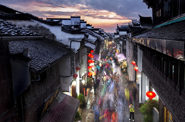明、清兩朝,徽商崛起,屯溪老街憑借地處皖、浙、贛三省交衢,橫江、率水匯合直通錢塘江的有利條件,成為徽州水陸運輸?shù)慕煌屑~,獲得迅速發(fā)展。版權(quán)所有山東聊城聊之旅國際旅行社有限公司,轉(zhuǎn)載必究!老街在明代成為頗有影響的“一邑總市”、清代發(fā)展成遠近聞名的“茶務(wù)都會”。到20世紀(jì)三四十年代因戰(zhàn)亂大量人口內(nèi)遷,又發(fā)展成皖南的商阜重鎮(zhèn),獲得“小上?!钡拿暋?949年以來,作為區(qū)域中心城市,屯溪面貌發(fā)生了翻天覆地的變化,城市規(guī)模迅速擴張,現(xiàn)代建筑鱗次櫛比,但屯溪老街得到了很好的保護,深厚的商貿(mào)文化薪火相傳。
