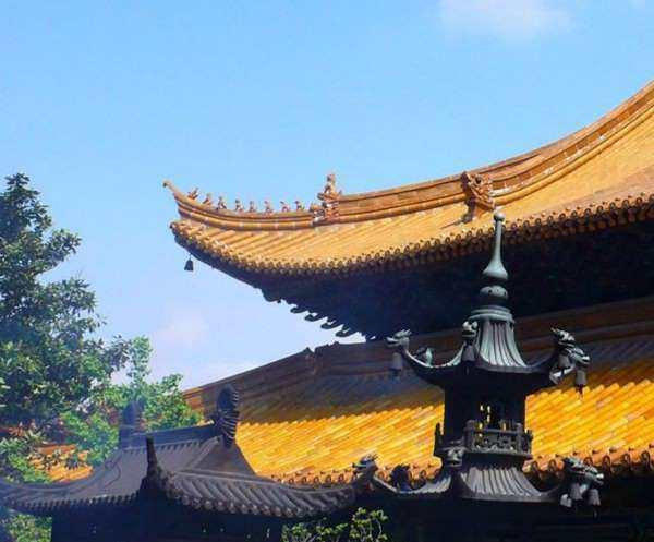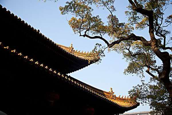 鐘鼓樓。山門東側(cè)是鐘樓,重檐歇山,內(nèi)懸大銅鐘一口,重3500余公斤,鑄于清嘉慶十二年(1807年)。西側(cè)有鼓樓,建筑形式同鐘樓。每天清晨撞鐘,傍晚擊鼓,召集僧眾參加活動,這就是古代詩文中常說的“晨鐘暮鼓”。