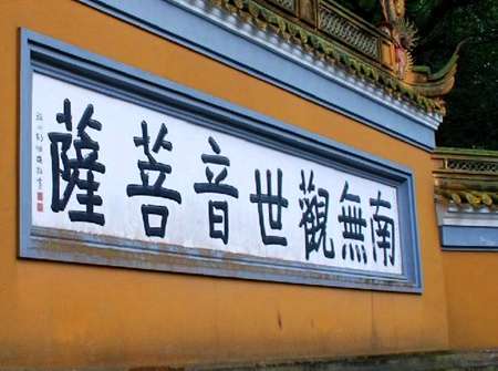 東西兩壁又各塑有16尊不同服飾,不同形態(tài)的菩薩,稱觀音三十二應(yīng)身,即觀音以不同身份教化世人時(shí)的現(xiàn)身說法形象。她們是:辟支佛身、聲聞身、梵王身、帝釋身、自在天身、大自在天身、天大將軍身、毗沙門身、小王身、長者身、居士身、宰官身、婆羅門身、比丘身、比丘尼身、優(yōu)婆寒塞身、優(yōu)婆夷身、長者婦女身、居士婦女身、宰官婦女身、婆羅門婦女身、童男身、童女身、天身、龍身、夜叉身、乾闥婆身、阿修羅身、邊樓羅身、緊那羅身、摩睺羅迦身、執(zhí)金剛神身。再加上中間供奉的觀音佛身,共33身。這種塑法是觀音道場的獨(dú)特之處。主殿兩旁建有配殿。東首文殊殿,供奉應(yīng)化于五臺山的文殊菩薩;西首普賢殿,供奉應(yīng)化于峨眉山的普賢菩薩。兩側(cè)回廊是羅漢堂,各塑9尊共18尊羅漢。