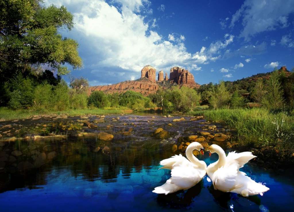 進入新洞,首先看到的是一片高高低低的石筍,形態(tài)各異,宛若天上的各路神仙,所以取名為“群仙聚首”。旁邊還棲息著一只天鵝,美麗的身姿,映照在她身后的湖水中,這面湖水也因此而得名為“天鵝湖”。