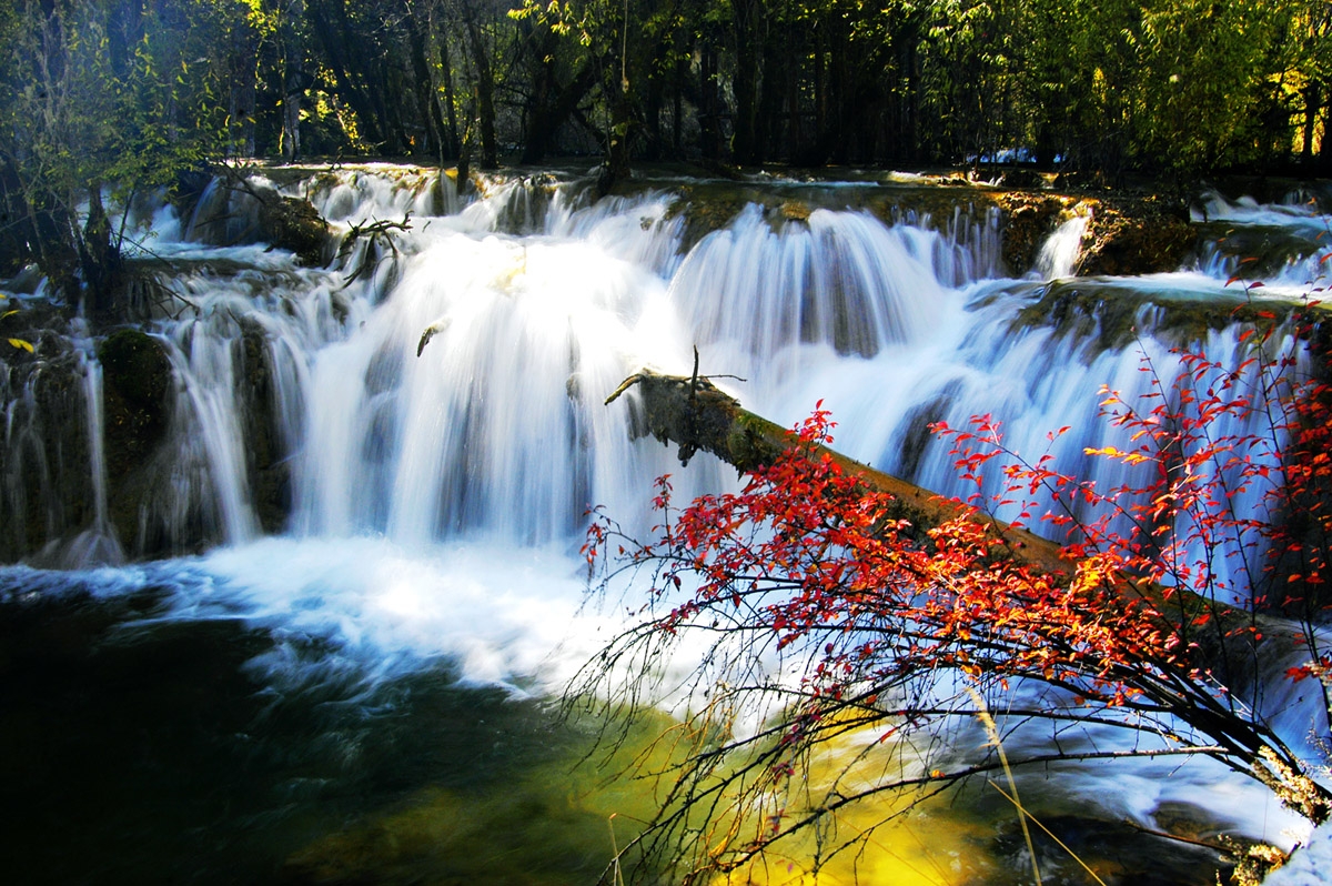 經(jīng)臥龍灘、蛤蟆宮、綠柳灘,到距離標示為1450米之處,可見一片風(fēng)格獨特的小瀑布群--林中疊瀑,沿棧道繼續(xù)上行,途經(jīng)九流池、玉液瀑,就到了札嘎瀑布的底部濺玉臺。