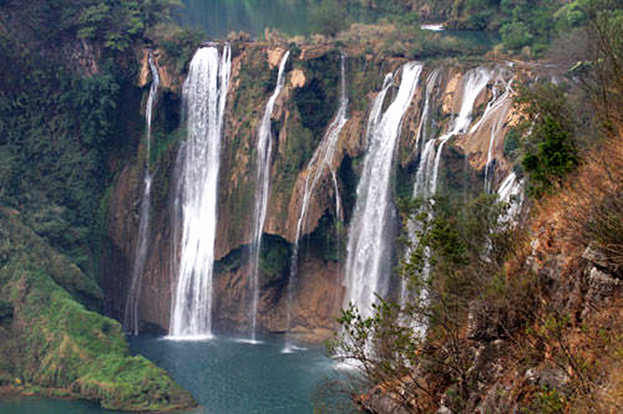 鈣華體上的水卻清澈明亮。該瀑布為全國目前發(fā)現(xiàn)的落差最大的鈣華瀑布,有“中華第一瀑”之美譽。
