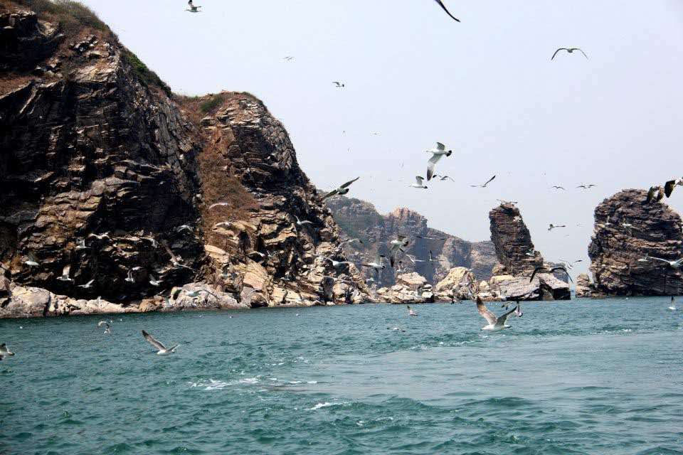 一條蛇每年至少要吃掉8—10只小鳥才能滿足生存所需的能量,這就意味著,每年將會有16—20萬小鳥供蛇食用。如果按蝮蛇捕食率10%來計算,每年將有200萬只小鳥飛落蛇島。因此,保護(hù)老鐵山的候鳥不僅在于保障遷徙,也是為了蛇島蝮蛇提供充足的食源?!▲B島又名海貓島,因為它們的叫聲像貓,因當(dāng)?shù)貪O民把海鷗稱為“海貓”而得名。鳥島位于旅順口董砣子7.2公里處的渤海之中,總面積0.3平方公里。與蛇島相距7海里,島上的植物、巖石和土壤與蛇島接近,但它卻是海鷗生息的樂園,同時有白眉蝮蛇與之和平相處。個別饑不擇食的白眉蝮蛇冒犯海鷗,必然遭到海鷗的群起而攻之,最后被海鷗啄起丟人大海。最令人驚奇得是:如果將蛇島和鳥島的兩類蛇交換“場地”,都不能生存下去,至今這還是一個待解之謎。來到鳥島大有“遙看碧波小龍鳳,崖前飛鷗似云行”之感?,F(xiàn)在我們大家如果感興趣的話可以自費(fèi)乘坐我們的游艇需要90分鐘的環(huán)島觀看,蛇島是國家級自然保護(hù)區(qū),一般人是很難得近距離觀看。蛇島周圍風(fēng)景優(yōu)美,有鹿石等名聲景點(diǎn),在乘船過程中可以看見難得一見的野生海豚,因為這里是海豚繁殖區(qū)。