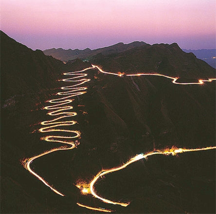 二戰(zhàn)時(shí)期,美國的援華物資經(jīng)過滇緬公路到達(dá)昆明以后必須要經(jīng)“二十四道拐”的滇黔線才能送到前線和重慶。二十四道拐成了中緬印戰(zhàn)區(qū)交通大動(dòng)脈,承擔(dān)著國際援華物資的運(yùn)輸任務(wù)。日寇曾多次派飛機(jī)對二十四道拐公路進(jìn)行轟炸,欲截?cái)嗲嵫屎怼?/span>美軍搶修后保留至今的二十四道拐公路,全長4公里,有效路面寬約6米,山腳第一道拐與山頂?shù)诙牡拦臻g的直線距離約350米,垂直高度約250米,坡的傾角約60度左右,驅(qū)小汽車由下至上,爬完24道拐約需8分鐘,由上至下約6分鐘,雖坡陡彎急,但無驚恐之感?,F(xiàn)由縣公路局養(yǎng)護(hù),仍可通車,但只有少量車輛通行。