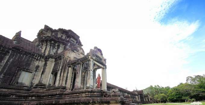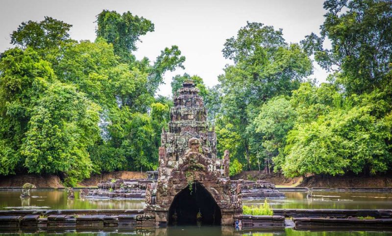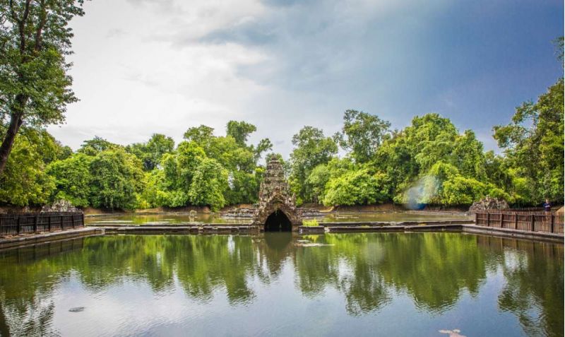 涅盤宮(Neak Pean)的意思是纏繞的巨蛇,就這么小小的神廟,在水中央,在藍(lán)天白云的襯托下,亭亭玉立,美得像一顆水中明珠。