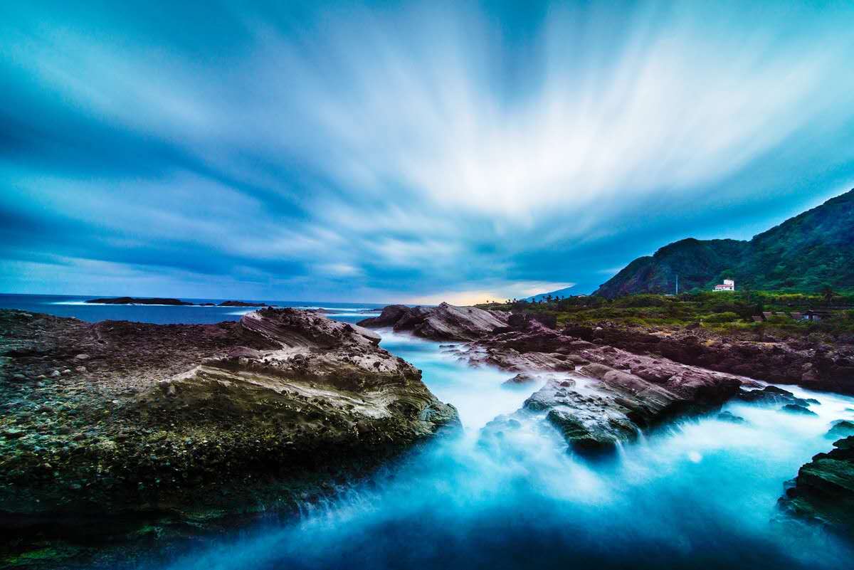 站在石梯坪怪石林立的海岸上,面對(duì)碧波萬頃、浩瀚湛藍(lán)的太平洋,看海浪洶涌,波濤澎湃,浪花飛濺,真是令人心曠神怡。