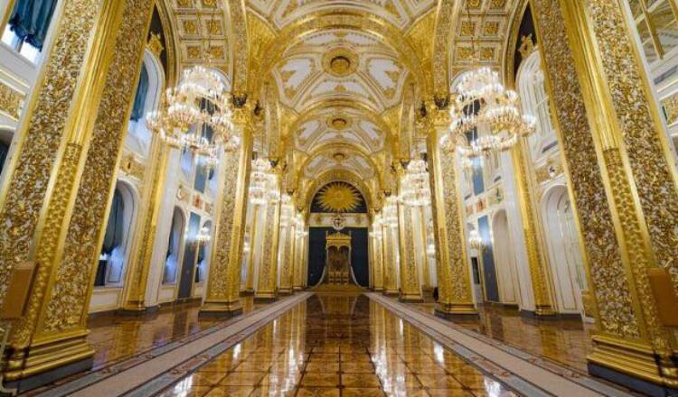 大克里姆林宮是克里姆林宮中的主要建筑之一??死锬妨謱m墻內,朝向莫斯科河有三列高窗的漂亮建筑物就是大克里姆林宮,1839~1849年在舊宮原址上建造,由古老的安德烈夫斯基大廳和阿列克山德洛夫斯基大廳聯(lián)結而成。大克里姆林宮外觀為仿古典俄羅斯式,廳室全部建筑式樣多樣,配合協(xié)調,裝潢華麗。宮殿的正中是飾有各種花紋圖案的閣樓,上有高出主建筑物的紫銅圓頂,達13 米,并立有旗桿,節(jié)假日則升國旗。大克里姆林宮內部呈長方形,樓上有露臺環(huán)繞的總面積達2萬平方米的700個廳室。從前,第一層除了處理政務的處所以外,全是沙皇私人宮室,白色寬闊的樓梯通往二層各廳,這里有格奧爾基耶夫大廳、弗拉基米爾大廳和葉卡捷琳娜大廳,從前還有安德烈耶夫大廳,曾是沙皇接見使臣的地方。格奧爾基耶夫大廳是大克里姆林宮中最為著名的殿廳,是俄羅斯工匠巧奪天工的建筑杰作。大廳呈橢圓形,圓頂上掛著6個鍍金兩枝形吊燈。每個吊燈重1300千克,圓頂和四周墻上繪有15~1 9世紀俄羅斯軍隊贏得勝利的各場戰(zhàn)役的巨型壁畫。大廳正面有18根圓柱,柱頂均塑有象征勝利的雕像。如今,格奧爾基耶夫大廳是政府舉行歡迎儀式的傳統(tǒng)地點。