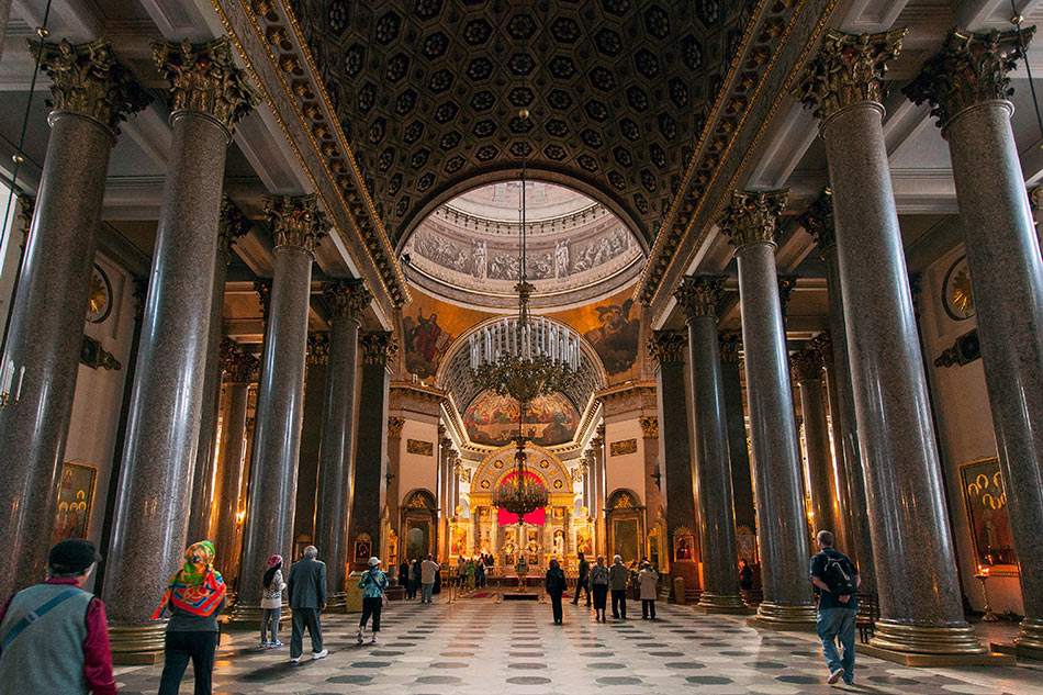 建筑師在設(shè)計(jì)這座教堂時(shí)遇到不少困難。根據(jù)東正教教規(guī)要求圣堂必須面向東方,因而必然造成教堂往往是側(cè)面對(duì)著主要大街。建筑師們采取了把側(cè)面設(shè)計(jì)得十分壯觀的方法解決了這一難題。版權(quán)所有山東聊城聊之旅國際旅行社有限公司,轉(zhuǎn)載必究!因?yàn)槿藗円豢礆舛确欠驳闹龋屯浟诉@不是教堂的正面。這種處理方法極其大膽,富有特色。高大的圓頂居中聳立在一排排圓柱上空,圓頂有70米高。大教堂正面的浮雕、北面柱廊上的雕刻、殿內(nèi)裝飾和油畫均出自名家之手??ι酱蠼烫玫膬?nèi)部不大像一般的教堂,而更像一座宮殿。它明亮、輕快,以柱列分隔的長形主堂高大寬敞,中央穹頂輝煌華麗,仰視可見一幅圣母圖,周邊飾以圣經(jīng)人物雕刻和水彩壁畫。