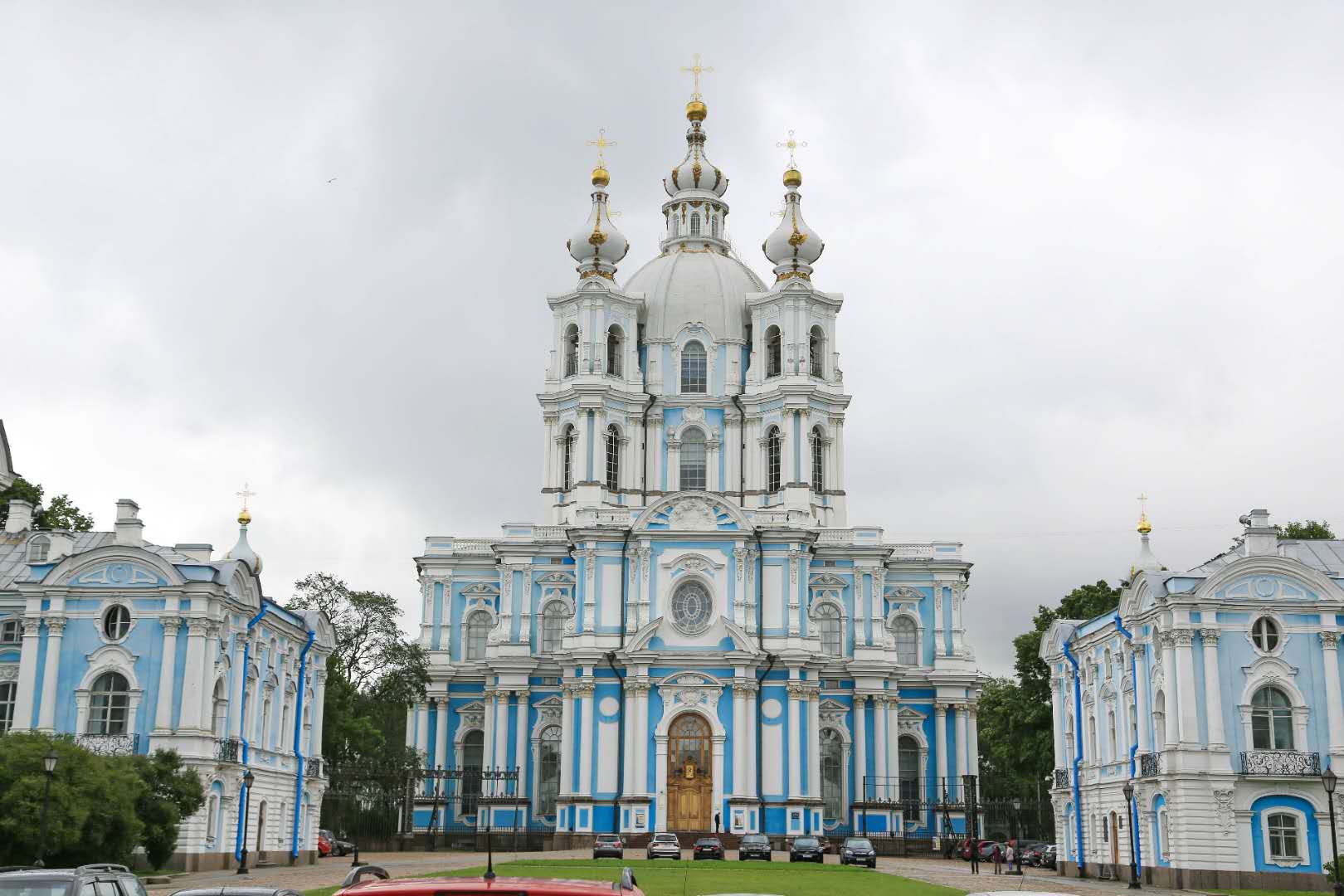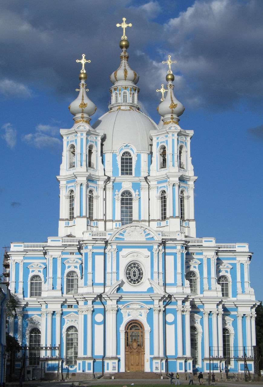 斯莫爾尼宮(Smolny),位于圣彼得堡市的東北部,在涅瓦河轉(zhuǎn)彎的地方,是一座外觀典雅的三層建筑,它建于1806—1808年,原為貴族女子學(xué)院?!八鼓獱柲帷币辉~來自俄語“瀝青”,初建時這里屬于瀝青廠,在蘇聯(lián)時期作為列寧格勒市政府辦公樓,現(xiàn)為圣彼得堡市政府,從市長到各處、陸軍部、內(nèi)務(wù)部仍在此辦公。斯莫爾尼宮位于圣彼得堡市中心,整體色彩和皇村的葉卡捷琳娜宮的色彩相同,為拜占庭藍(lán)白相間,是巴洛克風(fēng)格和拜占庭風(fēng)格的融合,在圣彼得堡的諸多宮殿里具有相當(dāng)高的代表性。
