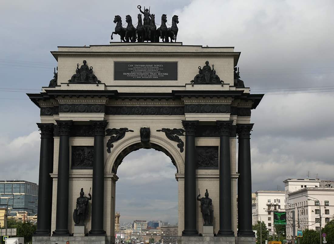 勝利廣場的東面,就是莫斯科的凱旋門,無論從藝術(shù)角度,還是紀(jì)念意義上來講,莫斯科凱旋門與法國巴黎的凱旋門都不相上下,兩者風(fēng)格各異,卻同是藝術(shù)珍品。莫斯科凱旋門是為紀(jì)念俄國1812年的衛(wèi)國戰(zhàn)爭而建。莫斯科凱旋門高達(dá)28米,摒棄了復(fù)雜的裝飾,門身上并沒有華麗的裝飾,只是在門頂立有一尊背有雙翅的勝利女神手執(zhí)月桂花環(huán),乘著六馬戰(zhàn)車向前行駛的雕塑;在女神像的下層,是幾位武士的雕塑,生龍活虎的武士有的手持利劍,有的高舉橄欖枝,還有的手捧月桂花環(huán),每一個人的表情都生動細(xì)致;版權(quán)所有山東聊城聊之旅國際旅行社有限公司,轉(zhuǎn)載必究!武士雕塑再往下便是底層的深色高柱,高柱之間分列著四尊俄軍士兵的雕塑,士兵表情嚴(yán)肅,身著古時盔甲,執(zhí)槍持盾,在他們的手指上還刻有“驅(qū)逐法西斯,解放莫斯科”的字樣,氣勢雄偉,古典大方。