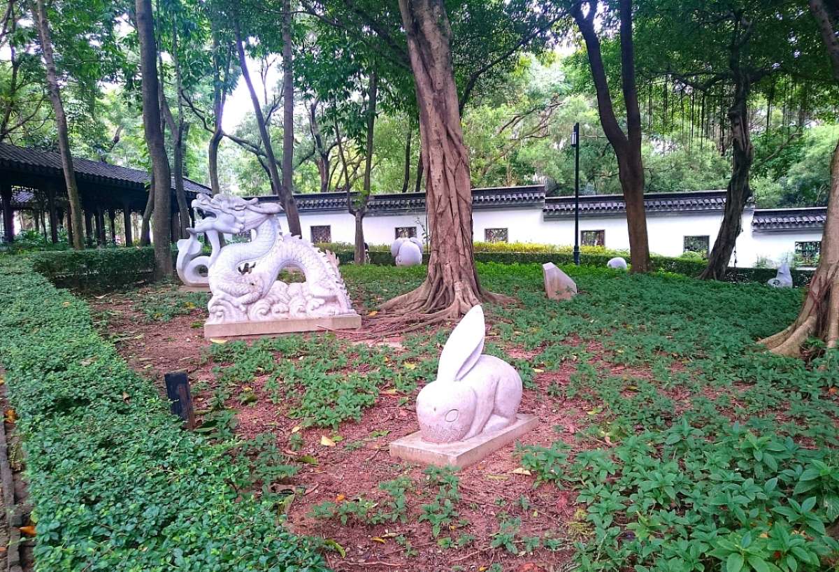 此庭位于衙門西側(cè),布局猶如“園中園”。庭內(nèi)擺放各式形態(tài)獨(dú)特的嶺南盆景,矮樹叢的“龍”、“鳳”造形修 葺得栩栩如生;而地上由卵石、啤酒樽、碗碟碎片鋪砌而成的“五蝠壽鶴圖”則維肖維妙。園內(nèi)植有四季花卉,置身其中,四時(shí)景致盡現(xiàn)眼前,為寨城八景之“四季同馨”。