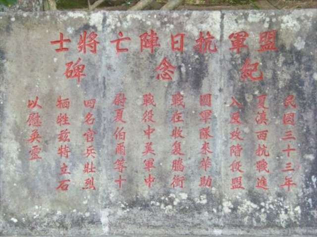 紀(jì)念塔建于坡頂。坡上蒼松翠柏,青草黃花,相伴著3168座排列整齊、挺然屹立的碑石,每塊碑石上刻有一位當(dāng)年攻城陣亡烈士的姓名、籍貫、軍銜、職務(wù)等。墓園西邊,大盈江水洶涌狂奔,滴水瀑布的巨大轟鳴回應(yīng)著墓園之松濤嗚咽;隔澗相對的龍光臺上,明將鄧子龍所書"劍掃風(fēng)煙"4個大字依稀可見;風(fēng)嶺晴崗在它的東側(cè),高聳的文筆塔與紀(jì)念塔相對應(yīng);向南望,美麗的和順僑鄉(xiāng)煙霞檬攏,風(fēng)光晴旋;極目北眺,籠籠朝云,瑞祥生輝;有名的史迪威公路--那條壯士們用生命捍衛(wèi)的"抗戰(zhàn)大動脈",從它的旁邊婉蜒而過。坡前,是抗日英烈紀(jì)念堂。堂中陳列有碑刻的"總理遺囑"及"天下為公"之訓(xùn)言。