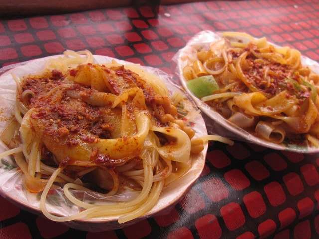 烤包子,涼皮,涼粉,抓飯,拉條子,烤羊肉 ,面肺子(不要輕易嘗試),卡瓦斯。重點(diǎn)介紹一下冰激凌,手工制作的冰激凌,因?yàn)橛昧霞?,無(wú)香精等添加劑,所以會(huì)有一點(diǎn)點(diǎn)牛奶的膻味。每一種食物的制作過(guò)程都是那么奇妙,如冰涼可口的卡瓦斯,需要在高溫下發(fā)酵。而盛夏那香甜的冰激凌,帶給人們的是涼爽,但在制作過(guò)程卻要經(jīng)過(guò)爐火的不斷煎熬才能保證其純正的味道。爐火燒得正旺時(shí),埃賽提在兩口大鍋中各倒入50公斤牛奶,再加入白砂糖。為了不讓牛奶糊鍋,需不停地用木鏟攪拌,直至牛奶呈現(xiàn)出誘人的奶黃色。而這僅是制作冰激凌的第一步——煮熟,卻需要兩個(gè)多小時(shí)。然后加入新鮮的雞蛋,繼續(xù)攪拌兩個(gè)小時(shí),使牛奶與雞蛋完全融合,直至埃賽提所說(shuō)的“冰激凌”的顏色出來(lái),這就是為什么我們吃的手工冰激凌總是呈現(xiàn)出誘人的蛋黃色的原因。