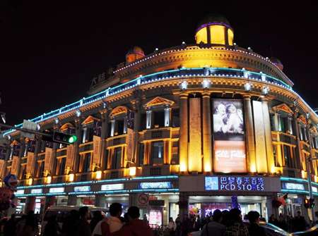 往前不遠(yuǎn)就是巴黎春天百貨,里邊匯聚了眾多國內(nèi)外一線的服裝品牌,種類齊全,樣式新穎。作為一家高檔服飾的連鎖巨頭,這里引領(lǐng)著時尚,引領(lǐng)著潮流。