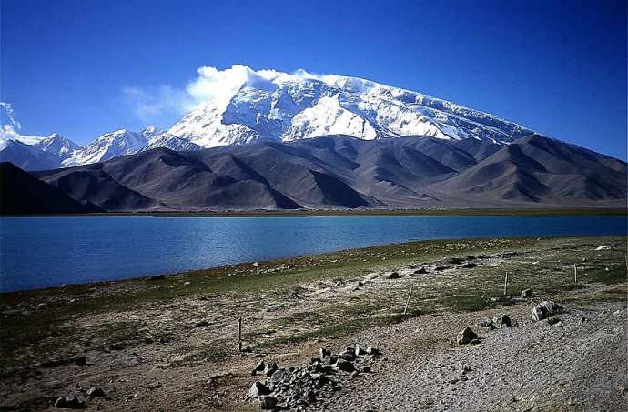 公格爾峰:與慕士塔格峰遙遙相望的是公格爾峰,公格爾九別峰,海拔分別為7649米,7530米,是昆侖山最高峰和次高峰,山頂常年積雪,山間懸掛著條條冰川,猶如飛流直下的銀瀑,又似隨風(fēng)飄逸的素練。